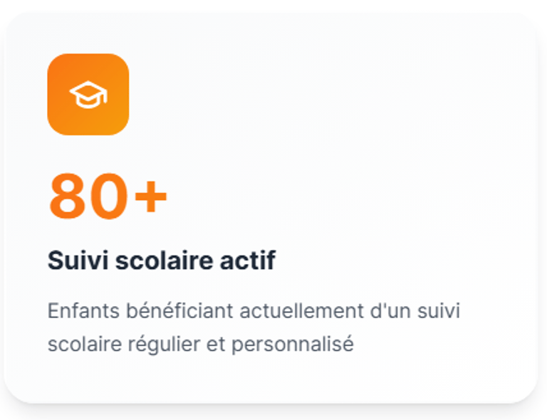 Nous mettons en place des programmes de tutorat, des ateliers de renforcement des capacités et un accompagnement individualisé pour chaque enfant bénéficiaire.